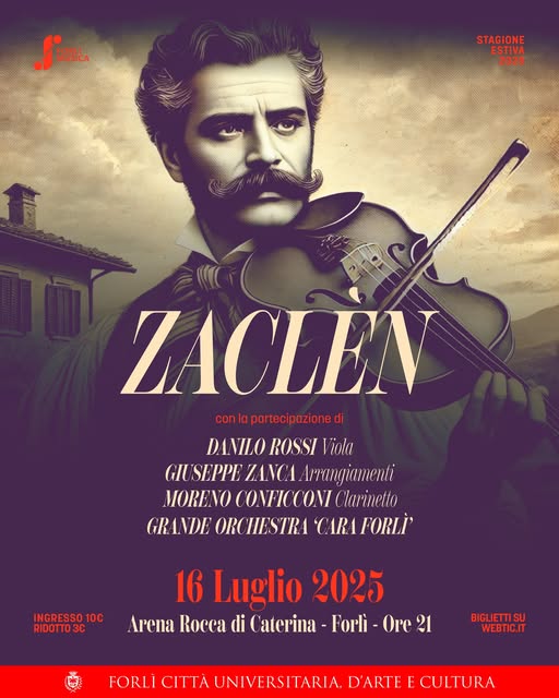 Mercoledì 16 luglio alle 21.00, l’Arena Rocca di Caterina ospita la serata musicale Zaclèn, con l’esibizione dell’orchestra Cara Forlì, organizzata dall’Associazione Forlì Musica.