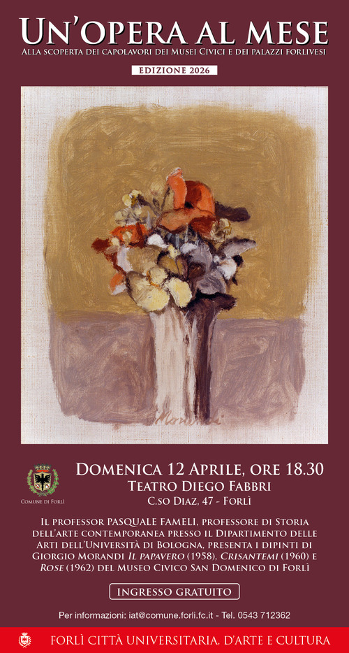 Il professor Pasquale Fameli, professore di storia dell'arte contemporanea presso il dipartimento delle arti dell'Università di Bologna, presenta i dipinti di Giorgio Morandi Il Papavero (1958), Crisantemi (1960) e Rose (1962) del Museo Civico San Domenico di Forlì.