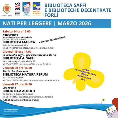 Marzo alle biblioteche decentrate di Forlì - Nati per Leggere - Comune di Forlì : TURISMO e CULTURA