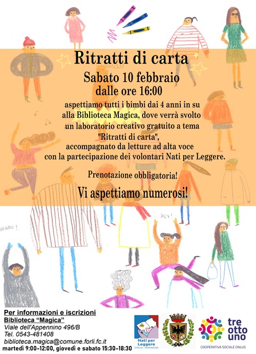 Ritratti di carta - laboratorio creativo alla Biblioteca Magica - Comune di Forlì : TURISMO e CULTURA